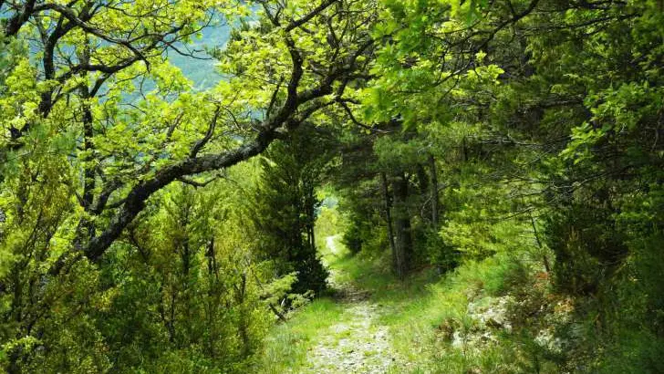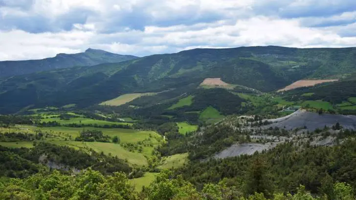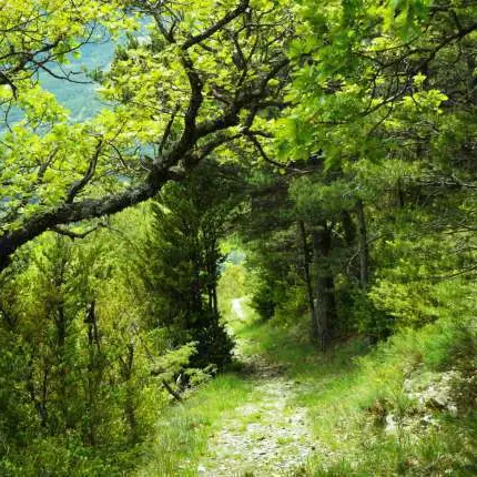 A l'intersection (poteau "La Viste"), continuer tout droit et descendre vers le ravin de Rioupape via un sentier. En bas prendre à gauche, passer à côté d'un mirador, longer un champ et traverser un ruisseau pétrifiant avec formation de tufs (concrétions calcaires). Rejoindre une piste en contre-haut et tourner à gauche sur celle-ci. Remonter le ravin sur 1,1 km en cheminant sur cette piste, puis bifurquer à gauche sur un sentier étroit dans le torrent de Rioupape (souvent à sec).