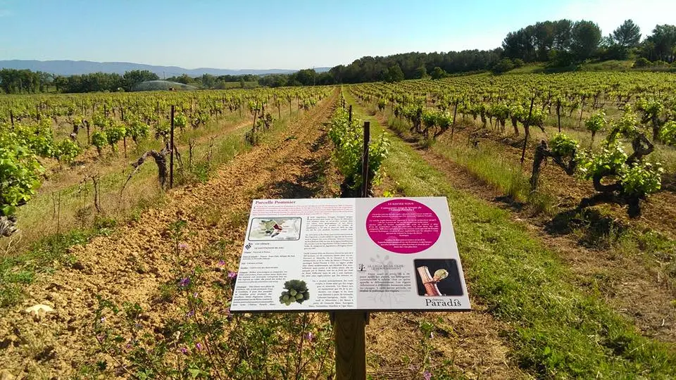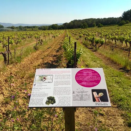 Un sentier découverte au domaine de Château Paradis, au nord d'Aix-en-Provence. Profitez d’une promenade instructive au cœur du vignoble !