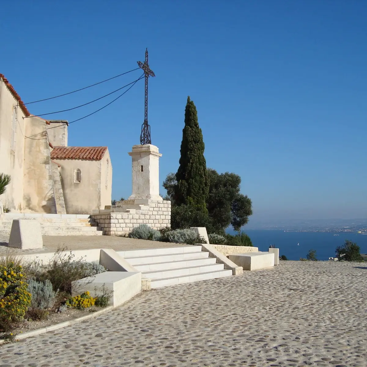 Si le coeur vous en dit, vous pouvez dévier du sentier avant de vous engager dans les jardins et monter la colline de la Chapelle de Notre-Dame-des-Marins. Elle offre un beau panorama de la ville.