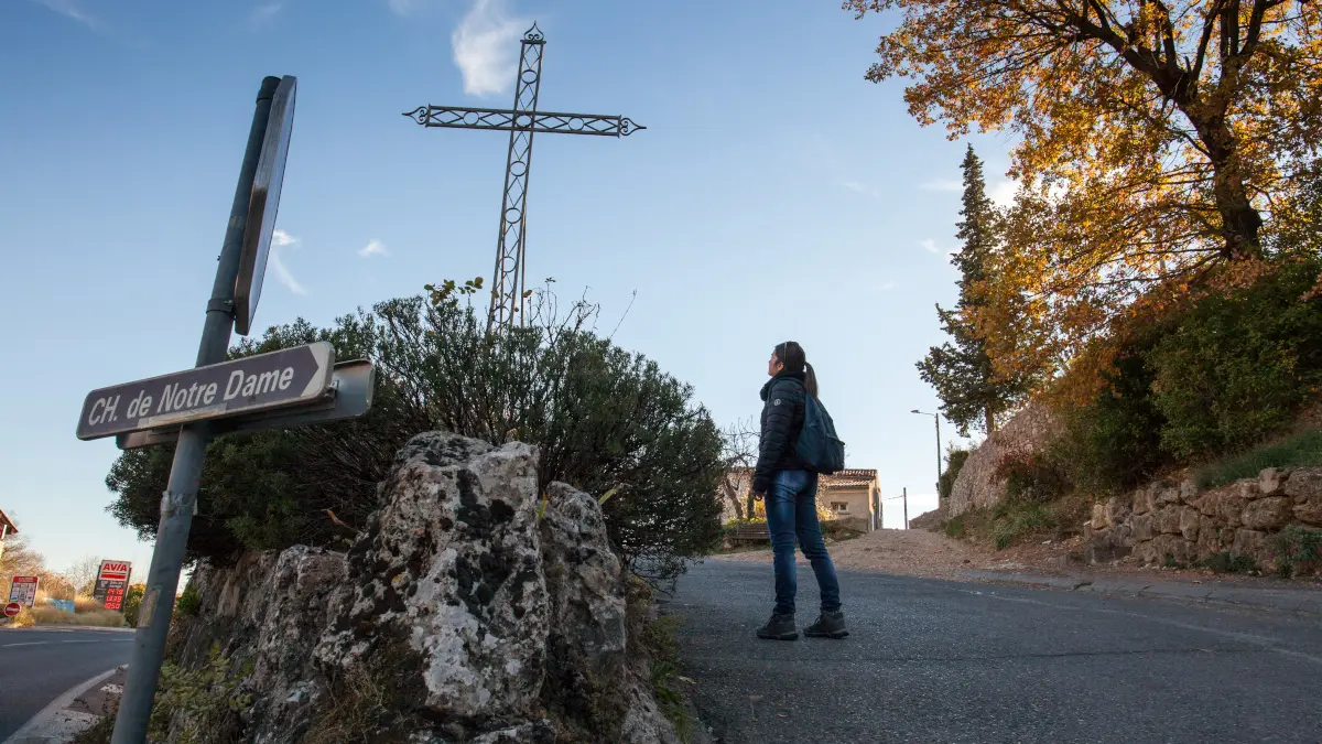 2. Emprunter le « chemin Saint-Joseph » à droite de la chapelle Saint-Bernard. A l’intersection (panneau risque incendie – maison en ruine) prendre à droite. Au niveau de l’oratoire « Présentation de Jésus » prendre à gauche, puis poursuivre tout droit. Passer devant la « Barrette Rouge ». A l’oratoire « l’enfant Jésus » poursuivre à gauche. A l’oratoire « La fuite en Egypte » poursuivre tout droit direction « Saint-Joseph ». Suivre le muret en pierres sèches.