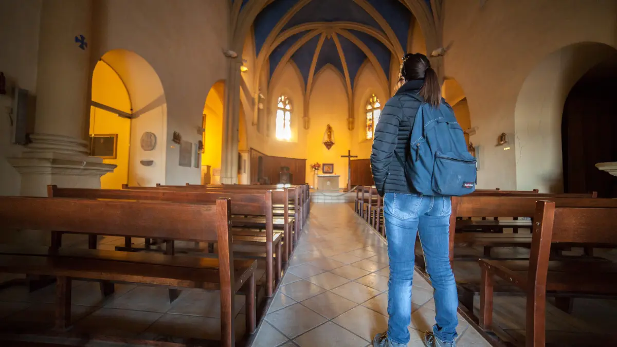 3. A l’oratoire « Recouvrement de Jésus » tourner à gauche, direction « Saint-Joseph ». A l’intersection, tourner à droite direction « Monastère de St Joseph » puis se faufiler sur le petit sentier (panneau Pèlerin) derrière la citerne CTC9. Regagner le bitume dans le virage en épingle. Traverser le parking pour visiter l’église et la source. Revenir sur vos pas pour rejoindre l’oratoire « Recouvrement de Jésus ».
