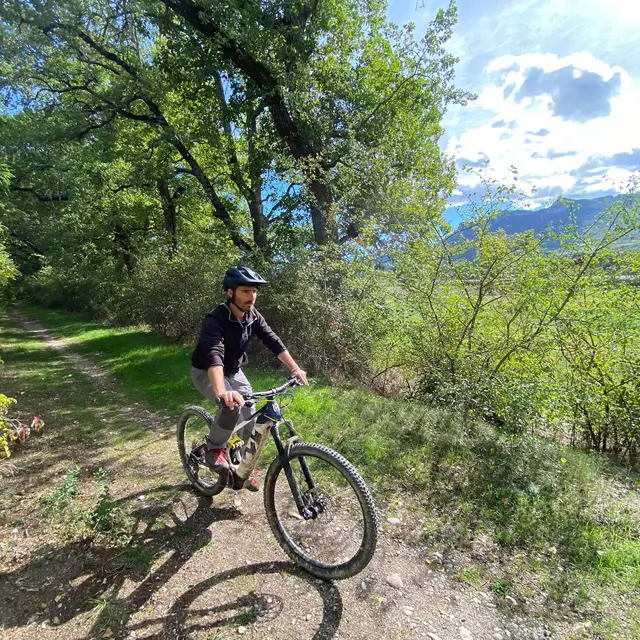 Cet itinéraire, au départ de Ribiers, emprunte des terrains très variés : chemin, sentier, petit sous-bois, gué ou encore vergers. Il présente un condensé des difficultés de l'activité VTT mises à la portée des débutants.
