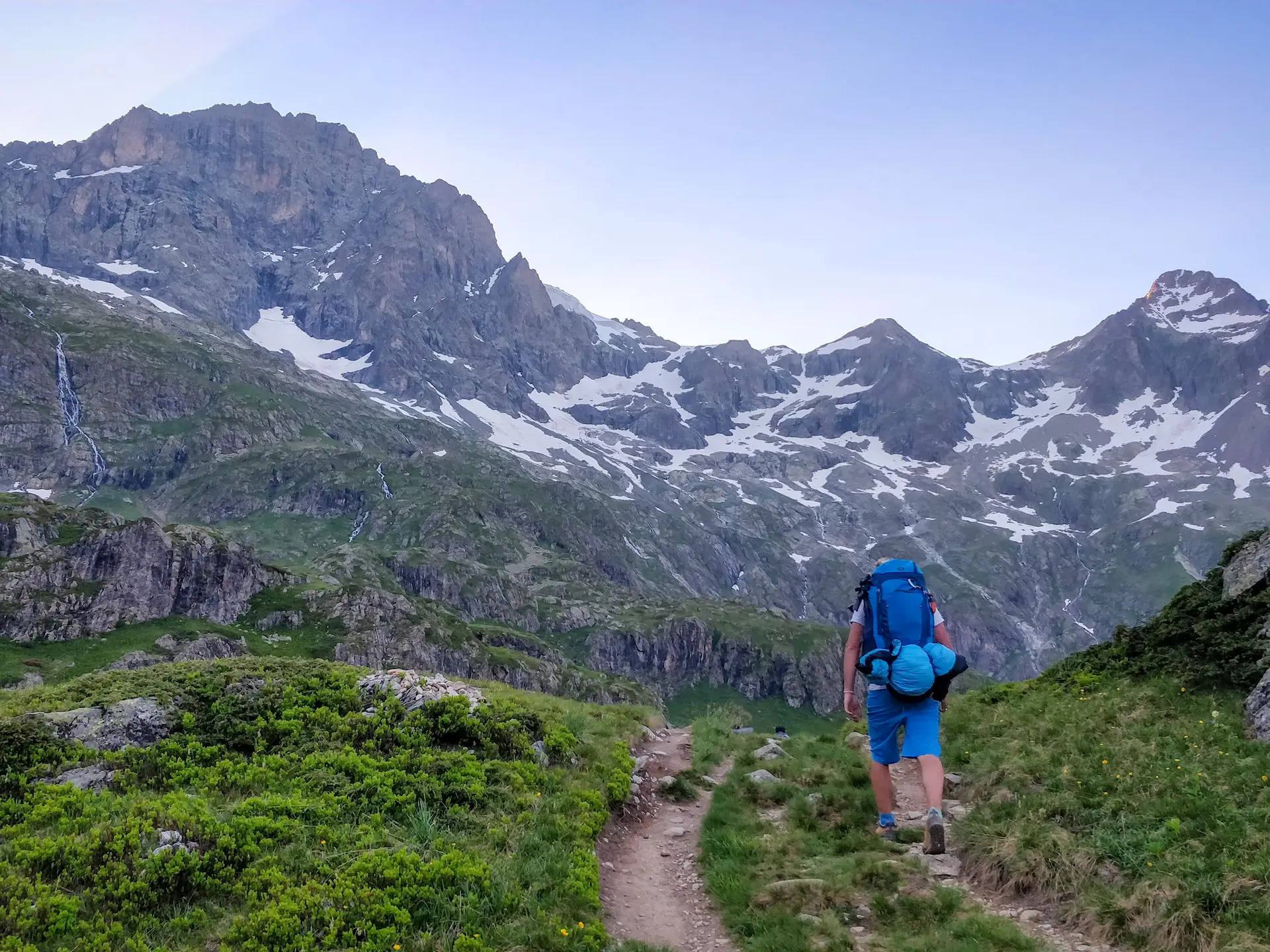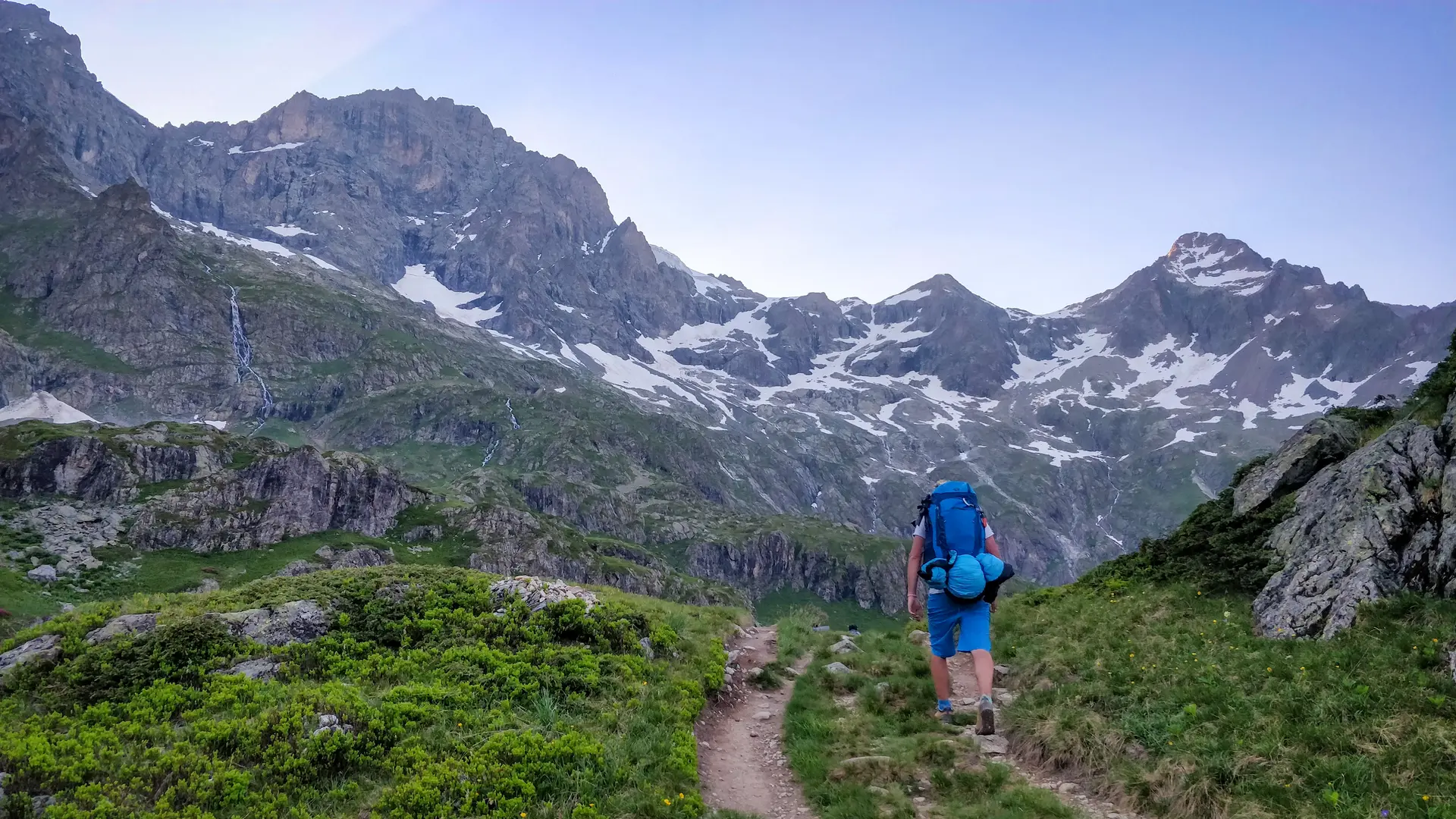 On quitte le merveilleux promontoire du refuge de l'Olan pour une longue descente, récompensée par les cascades de Combe froide et du Casset. On remonte ensuite la haute vallée du Valgaudemar, pour rejoindre le refuge du Clot du Xavier Blanc.
