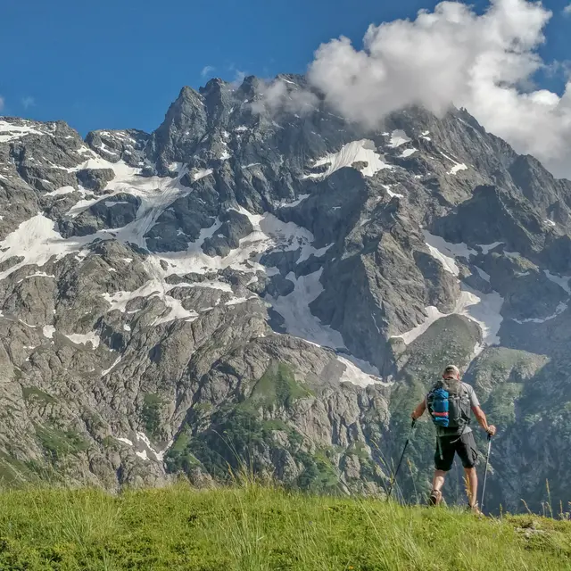 L'étape traverse le fond de la Vallée du Valgaudemar qui relie le versant sud des Rouies au versant nord du Sirac. On est imprégné par la présence des sommets, on observe la faune et la flore de ces milieux caractéristiques du massif des Ecrins.