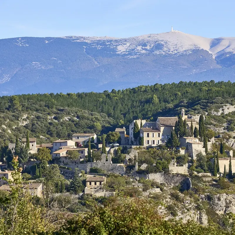 Parcours avec vue sur le vignoble de Méthamis et du Mont Ventoux.