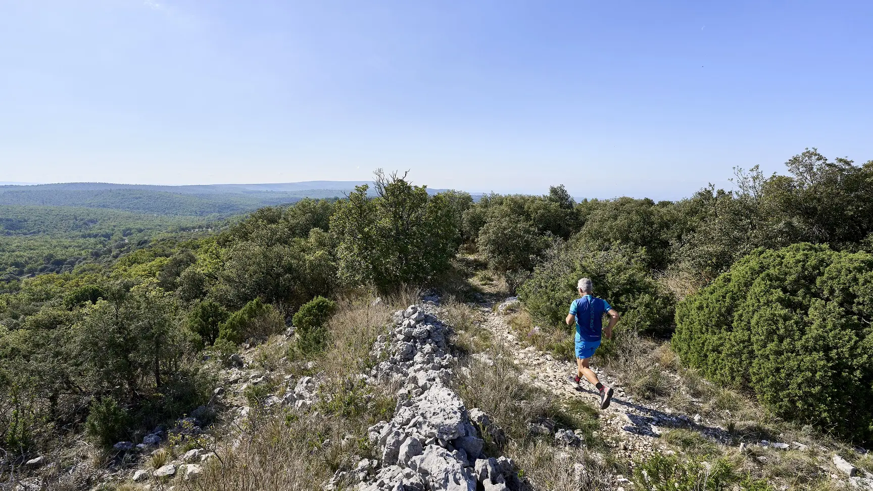 Une fois arrivé sur la crête, vous longerez l’étonnant Mur de la Peste, édifié contre la propagation de la maladie en 1720 dans la région. Le parcours devient plus roulant en sous-bois : idéal pour accélérer le rythme. Enfin, le circuit bascule sur une descente technique et très caillouteuse avec une vue extraordinaire face à vous.