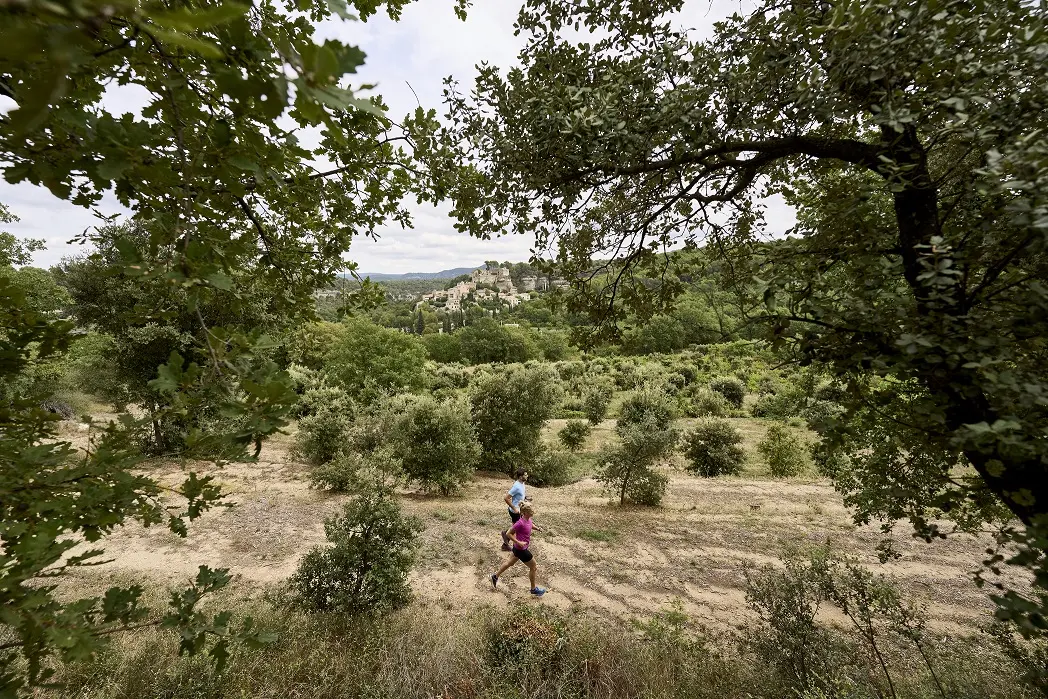Puis alternance de chemins en descente et montée amenant à la Forêt Départementale de Venasque - Saint Didier (3km). Parcours assez ombragé sur sa première partie puis plus ensoleillée en arrivant sur le plateau. Arrivée au parking de départ en passant par le Château.
