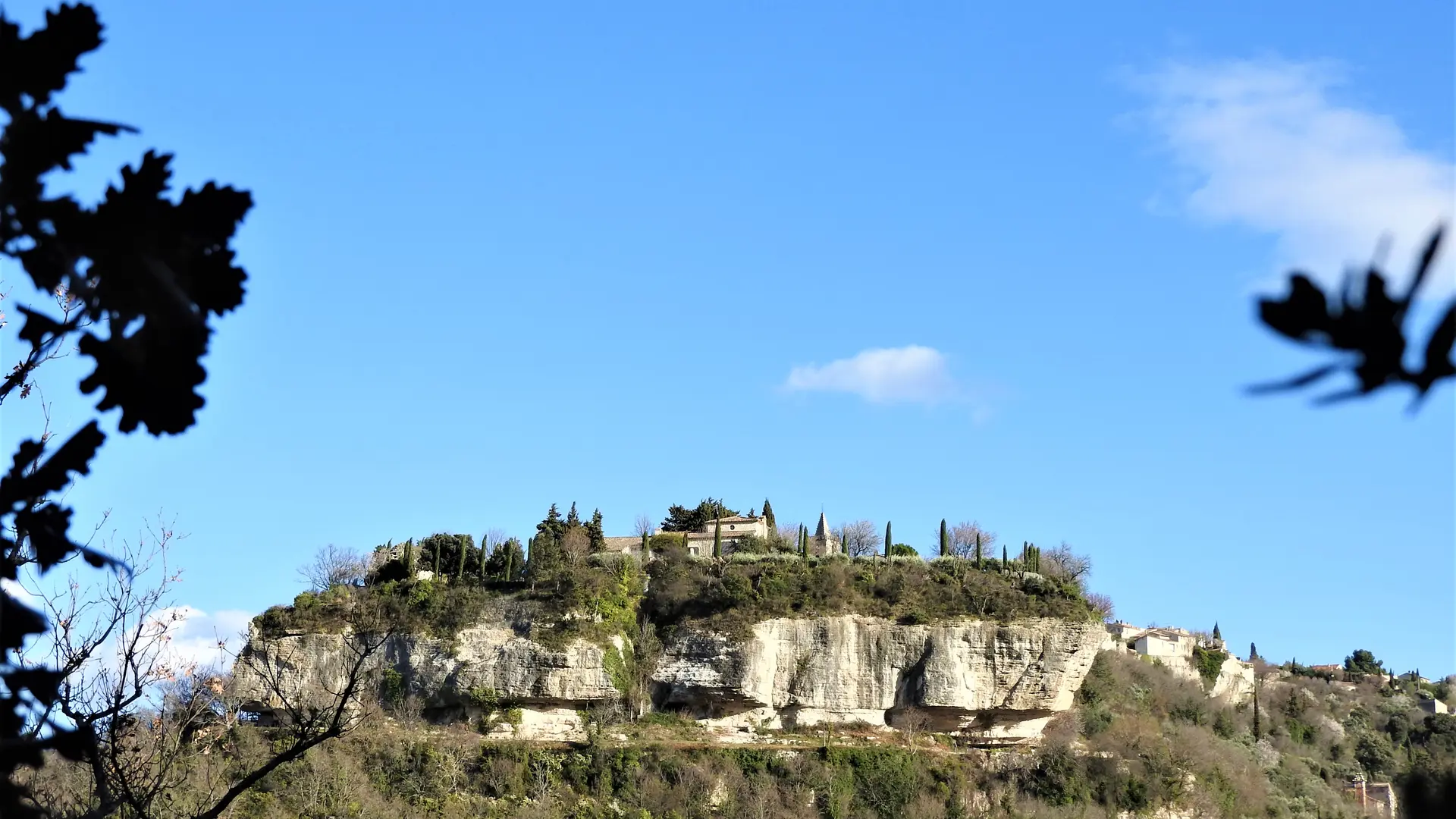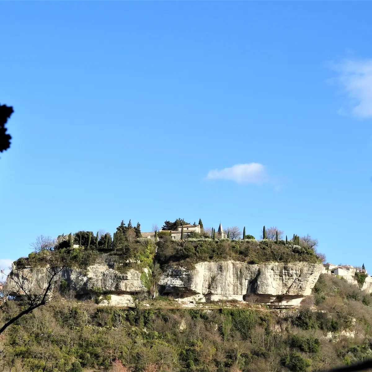 puis descend à droite, direction Venasque (panonceau). Prudence dans la descente ! A la route (Chapelle St Siffrein à gauche), traverser la route (prudence) et suivre le sentier en face qui remonte au village.Traverser le cœur du village pour retrouver le parking.