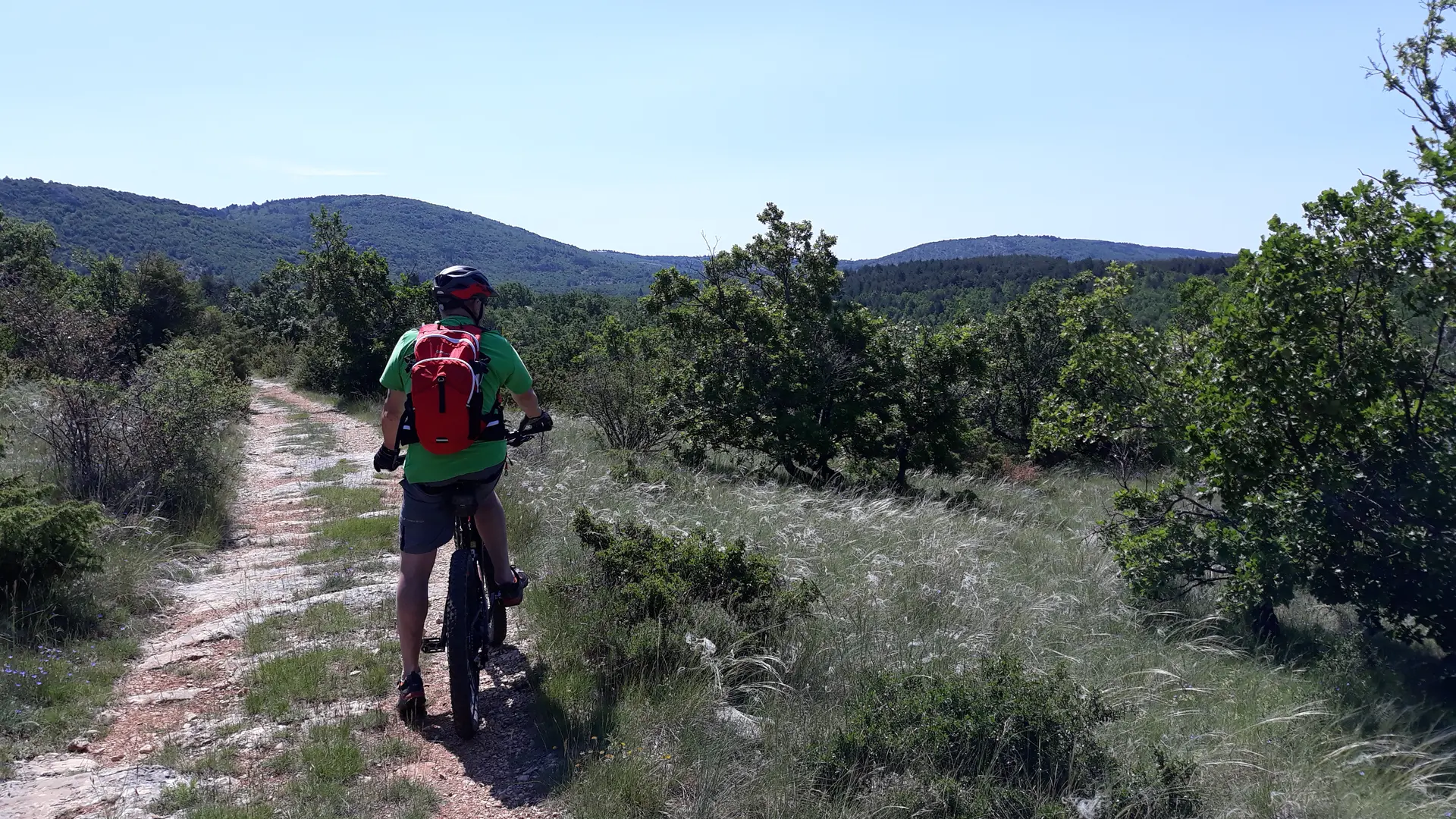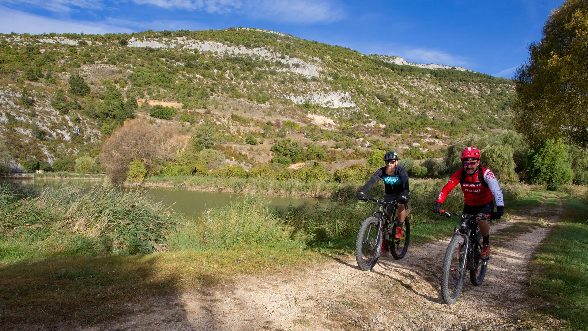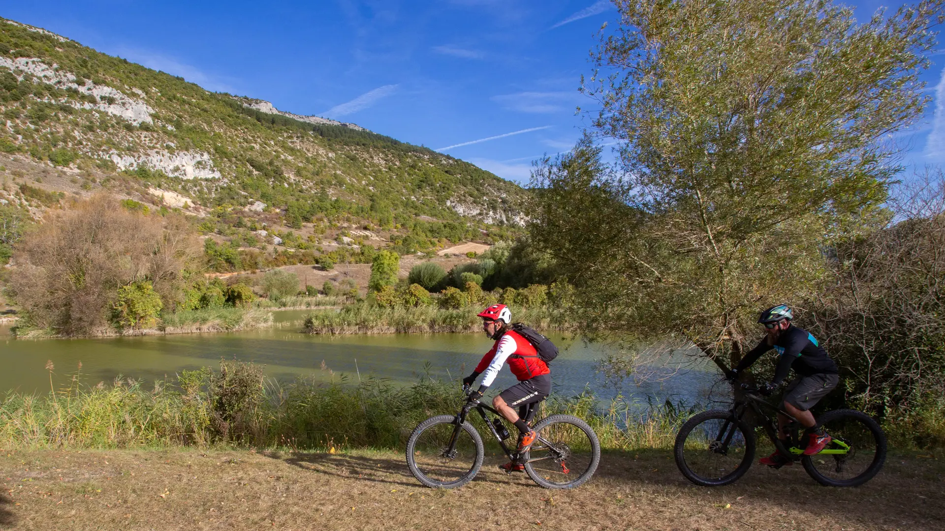 La partie finale du circuit (descente sur le lac) est déconseillée aux débutants. Possibilité de rejoindre Monieux par la route.