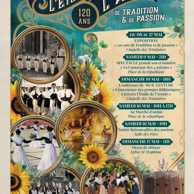 L’association Étoile de l’Avenir célèbre ses 120 ans avec une série de manifestations festives mettant à l’honneur les traditions provençales. Au programme : exposition, spectacle,conférence, marché d'antan... Ces événements visent à valoriser le patrimoine local et à rassembler le public autour de l’histoire et du savoir-faire de l’association, fondée en 1906.