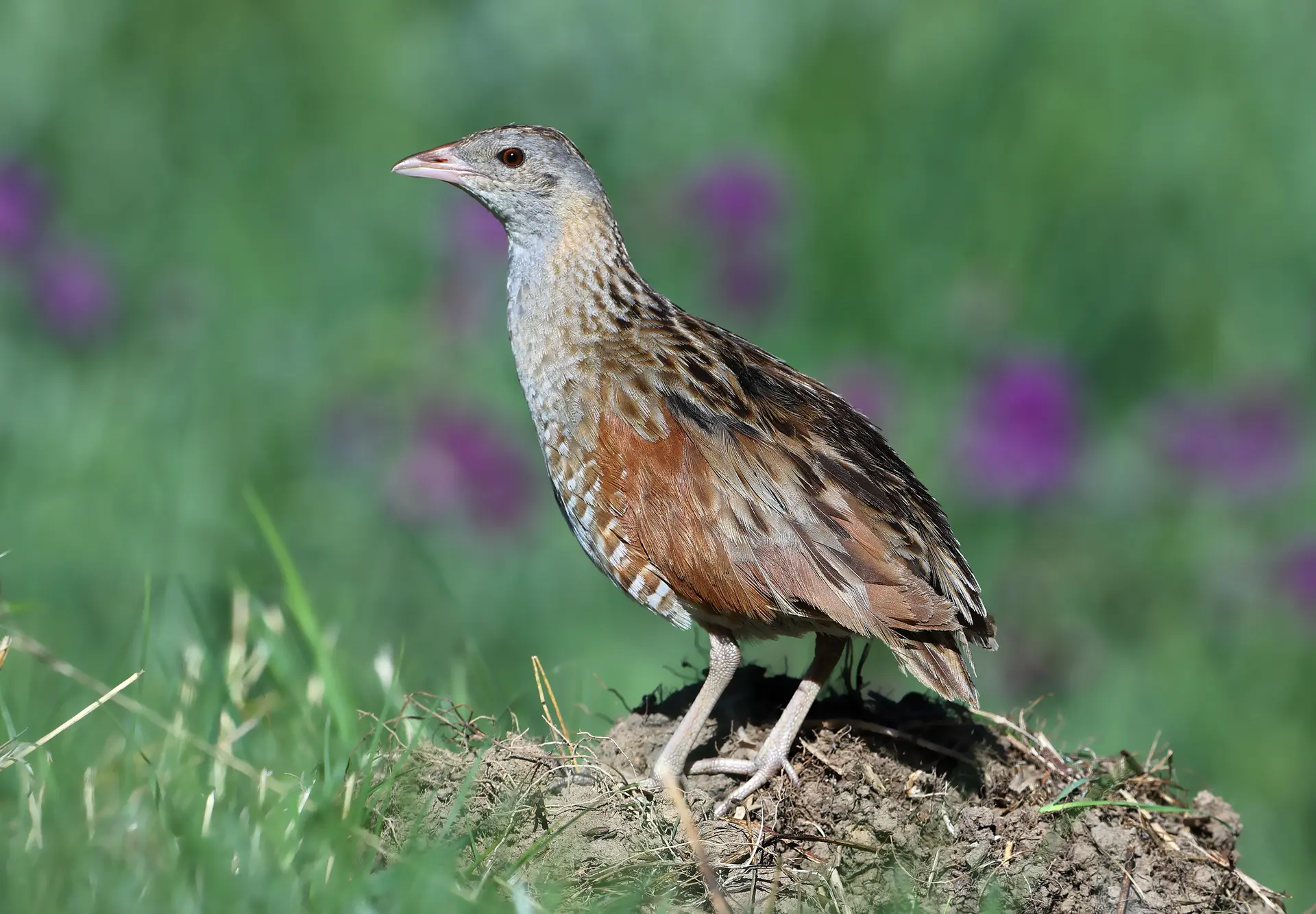 Discret, farouche et solitaire, le "roi des cailles" apprécie les prairies fraîches ou humides, dans lesquelles il se déplace à couvert derrière les herbes hautes... Mais, le soir, les mâles vont commencer à chanter...