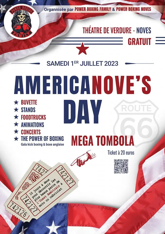 AmericaNove’s Day, organisé par le Power Boxing Family et le Power Boxing Noves, au Théâtre de Verdure. Buvette, stands, foodtrucks, méga tombola, animations, concerts...