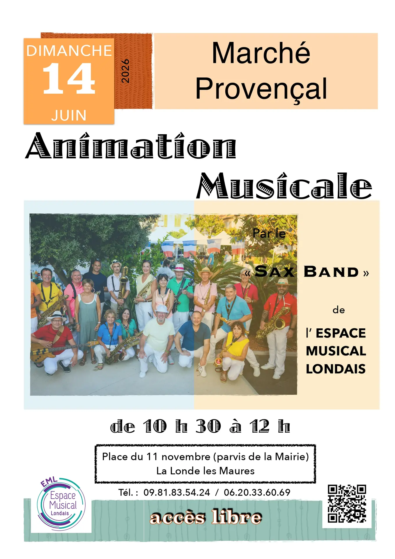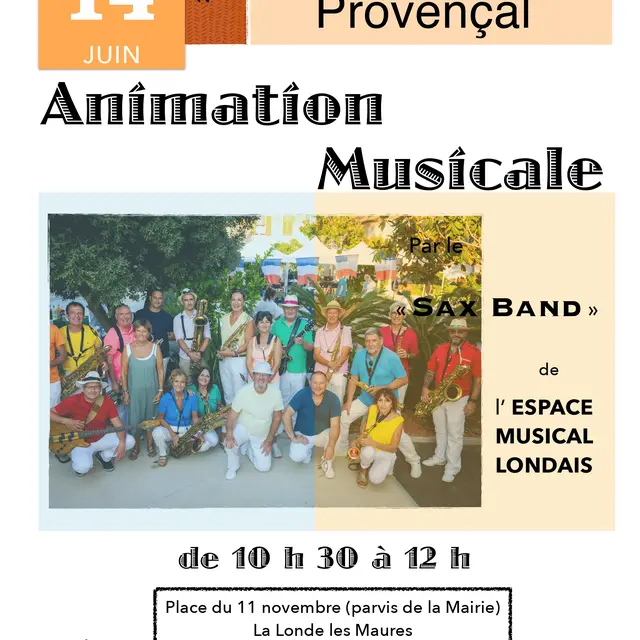 Dimanche 14 juin l'Espace de Musical Londais vous invite à venir découvrir le Sax Band lors du marché provençal de La Londe les Maures.