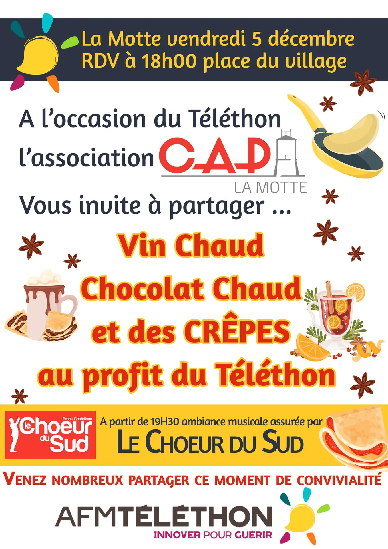 L'association des commerçants, artisans et professionnels libéraux organise le 5 décembre à partir de 18h, place Clémenceau, une soirée crêpes, vin et chocolat chaud, au profit du Téléthon.
