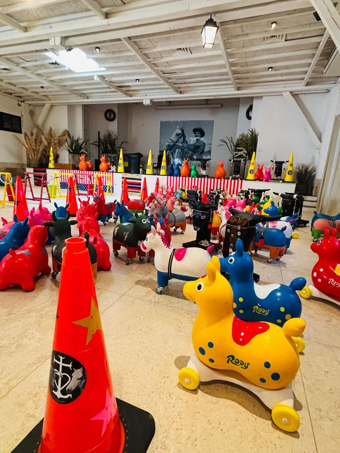 - Apprendre à attraper les cornes des (faux) toros, faire tourner un grand ou un petit cercle, attraper le burger avec un lasso ou faire du tir à l’arc !