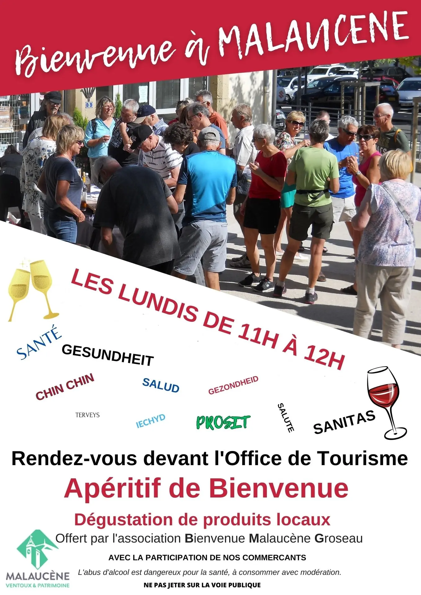 L'association Bienvenue Malaucène Groseau vous propose un apéritif destiné aux touristes, avec une dégustation de produits locaux.