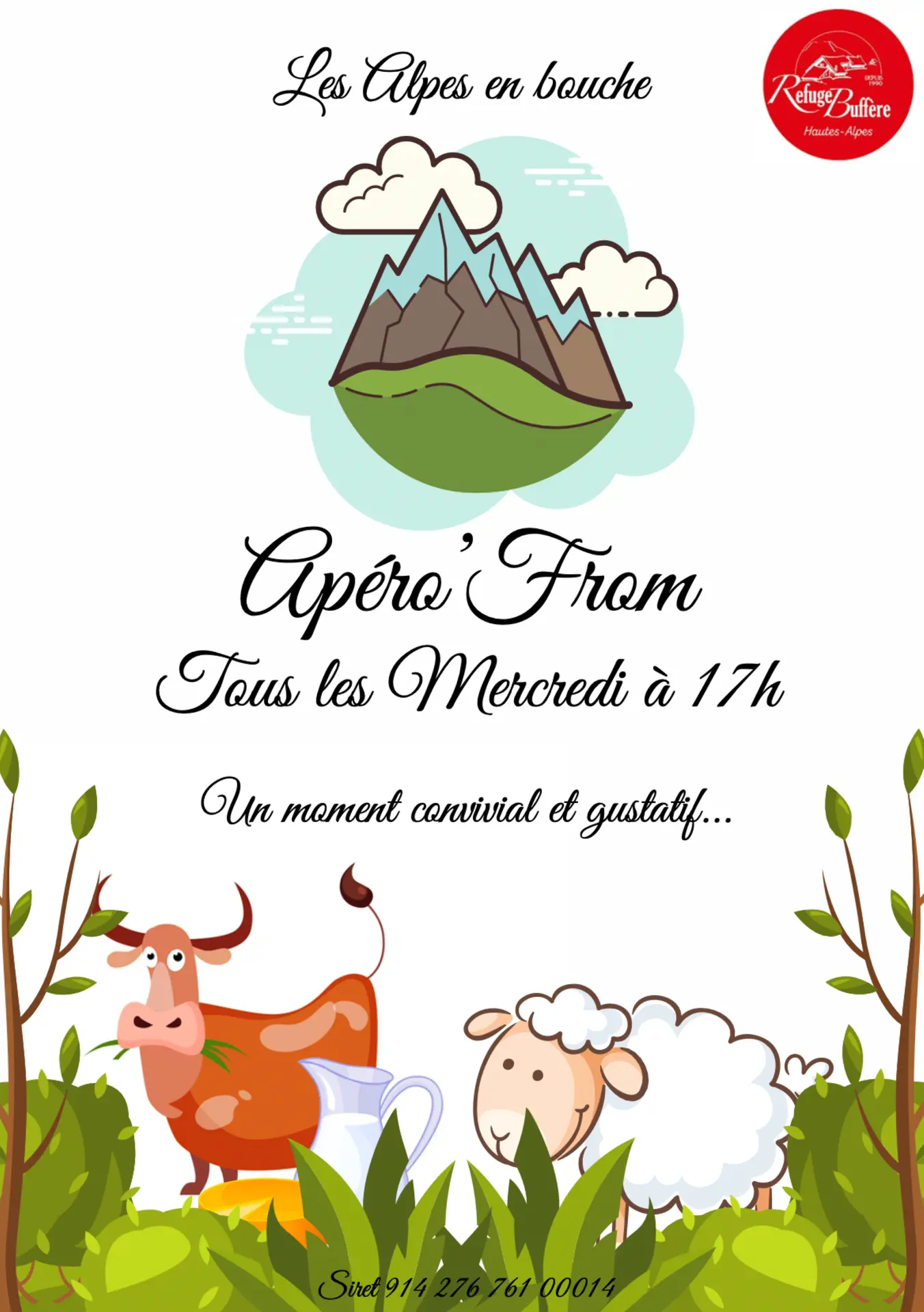 Rendez-vous tous les mercredis à 17h30 au refuge Buffère pour partager un apéritif convivial accompagné d'une dégustation de fromages.