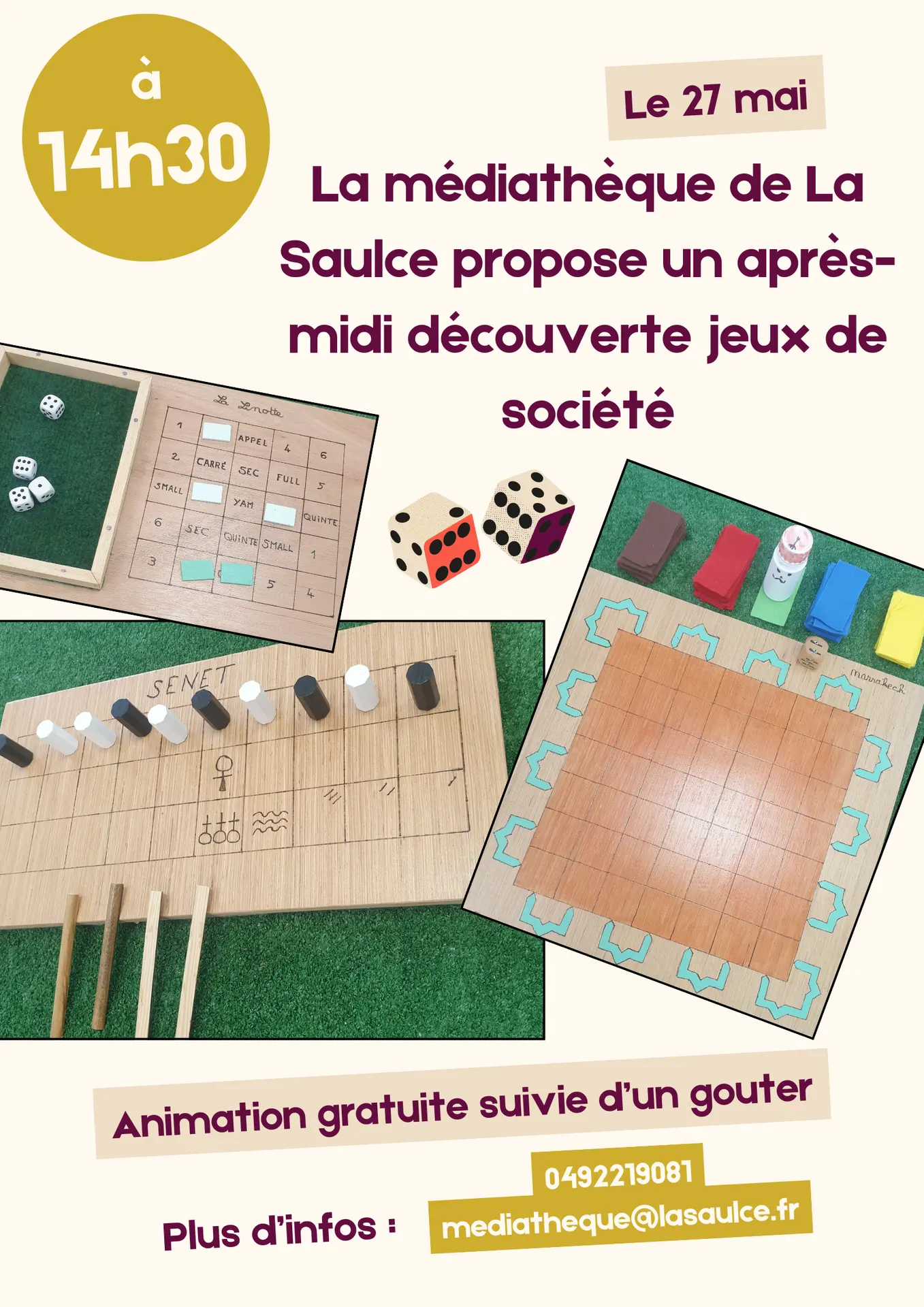 Différents jeux seront présents ainsi qu'un animateur afin de vous faire découvrir des jeux originaux, comme par exemple le jeu égyptien "Senet" ou encore "La Linotte".