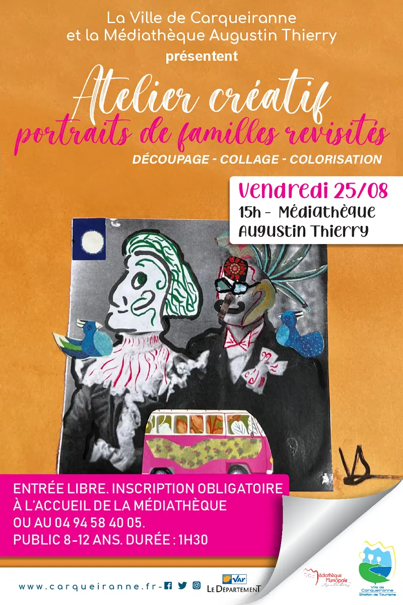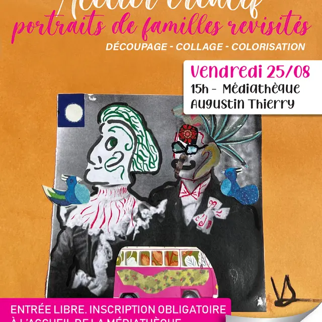 Atelier créatif de collage et de colorisation sur le thème de la famille et du rapport au temps. Animé par Céline Sassatelli, plasticienne. Public : 8-12 ans. Sur inscription, places limitées.