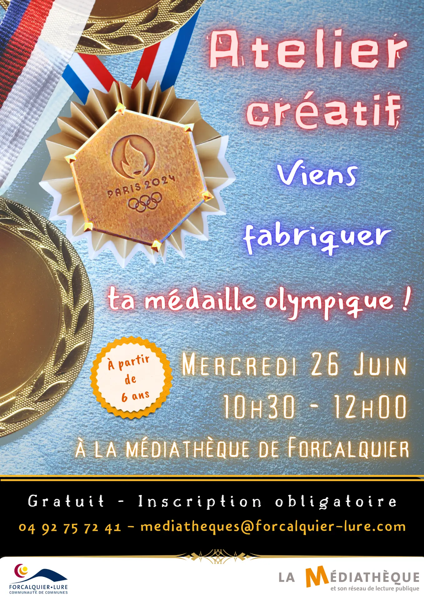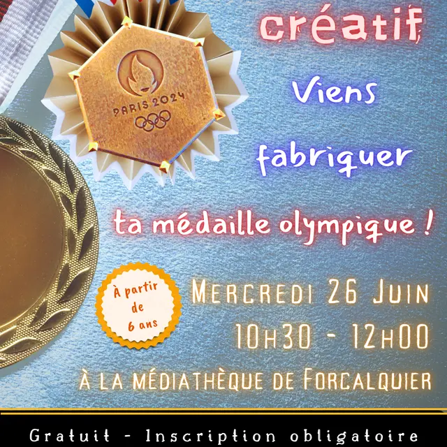 À l'occasion des jeux olympiques qui arrivent à grand pas à Paris, venez créer votre propre médaille olympique à la Médiathèque de Forcalquier.