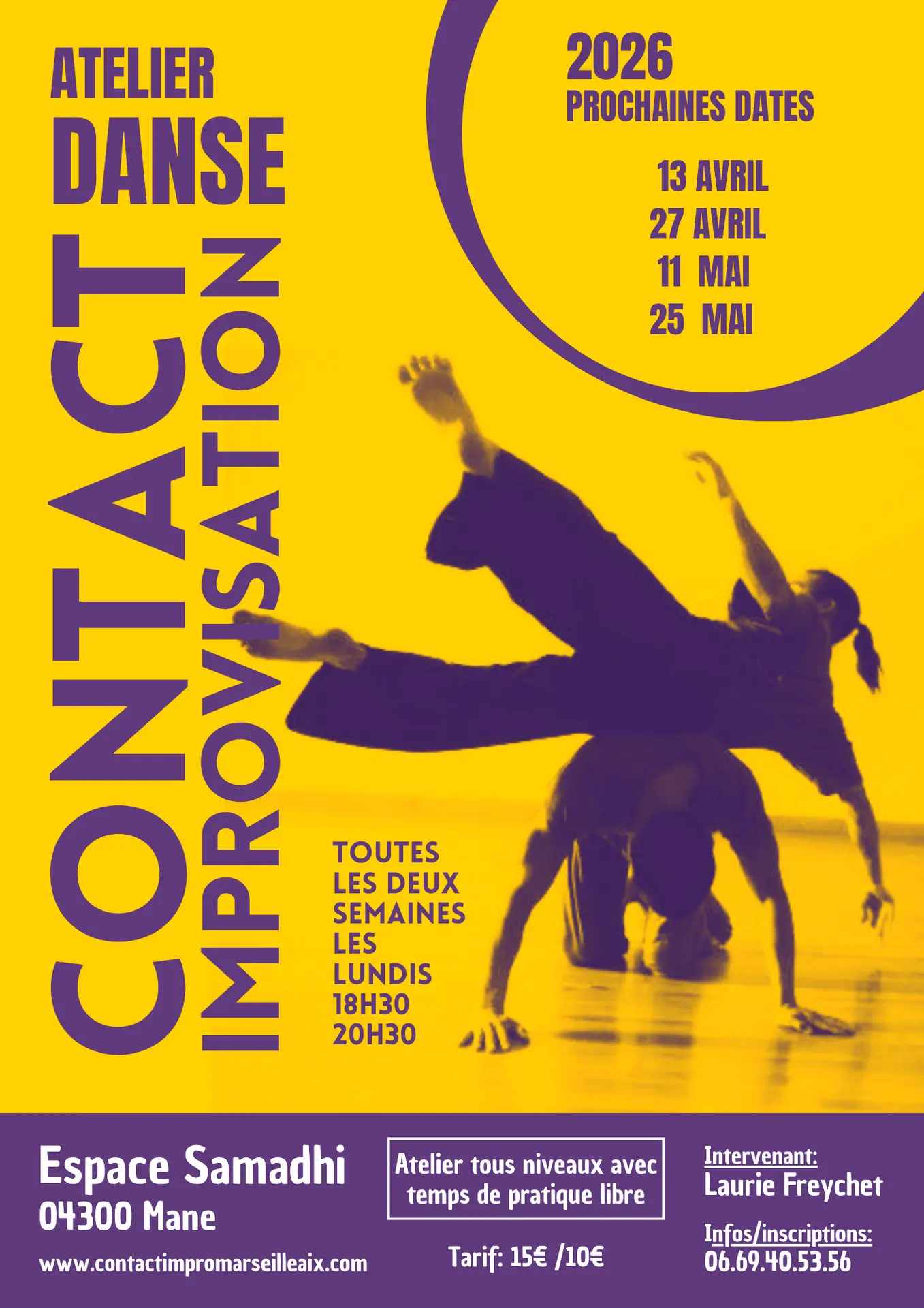 Chaque atelier se termine par un temps de jam, pratique de contact improvisation libre (avec ou sans musique, avec ou sans contact).