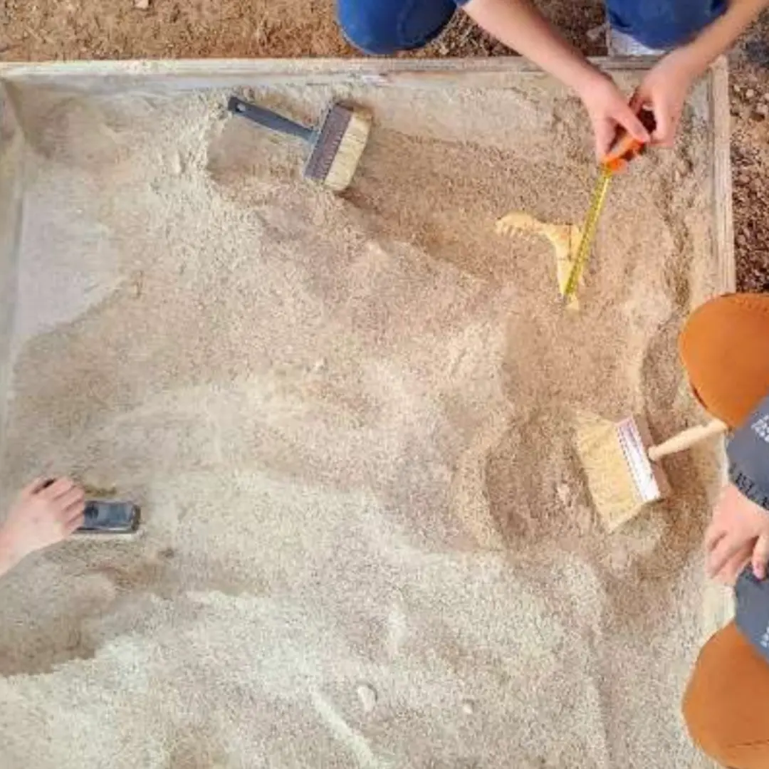 Grâce à un petit chantier de fouille reconstitué, les enfants peuvent s'initier aux méthodes de la fouille archéologique. Ils découvriront le plaisir, la minutie, la patience et la rigueur du travail de terrain des archéologues.