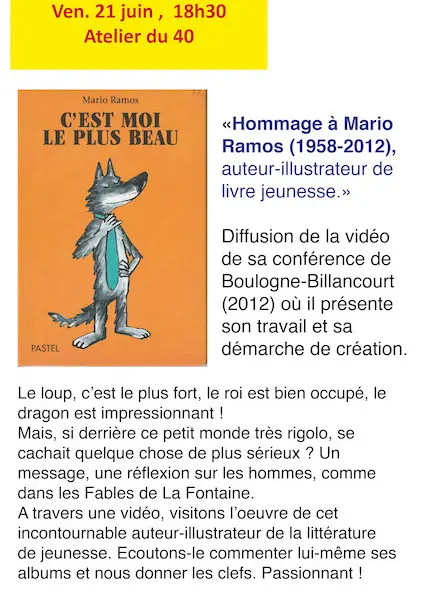 Vendredi 21 juin à 18h30 à l'atelier du 40 : hommage à Mario Ramos