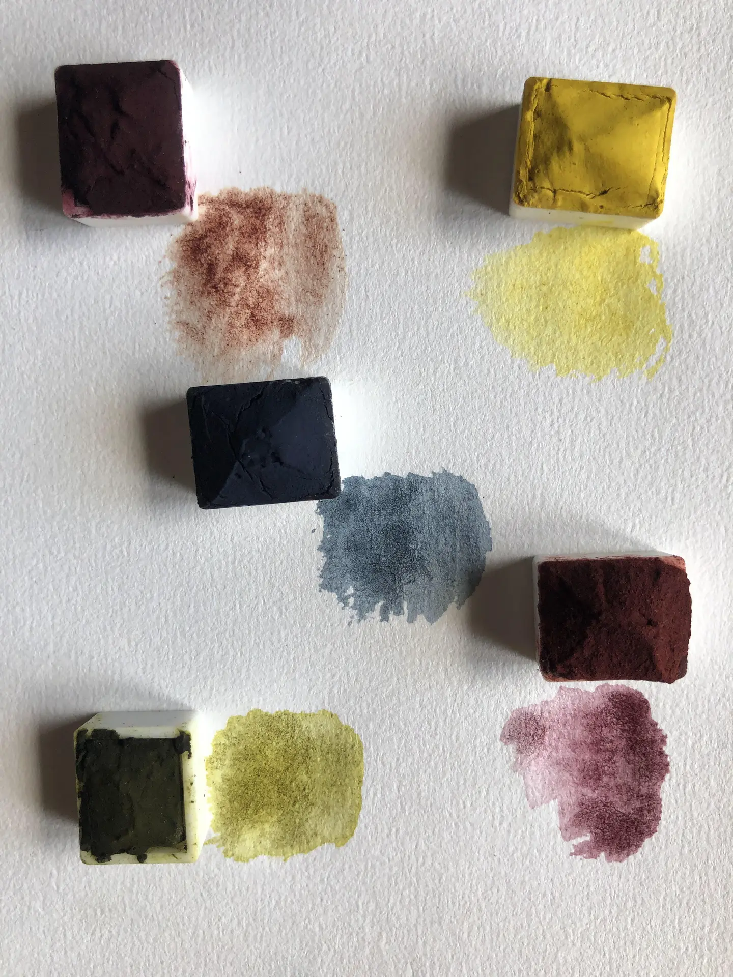 Le 2e jour est dédié à la fabrication des godets d’aquarelle et des gouaches. Le matin, les participants broient les pigments puis préparent une pâte onctueuse, qu'ils versent ensuite dans des petits godets ou des moules à glaçons pour les laisser sécher.