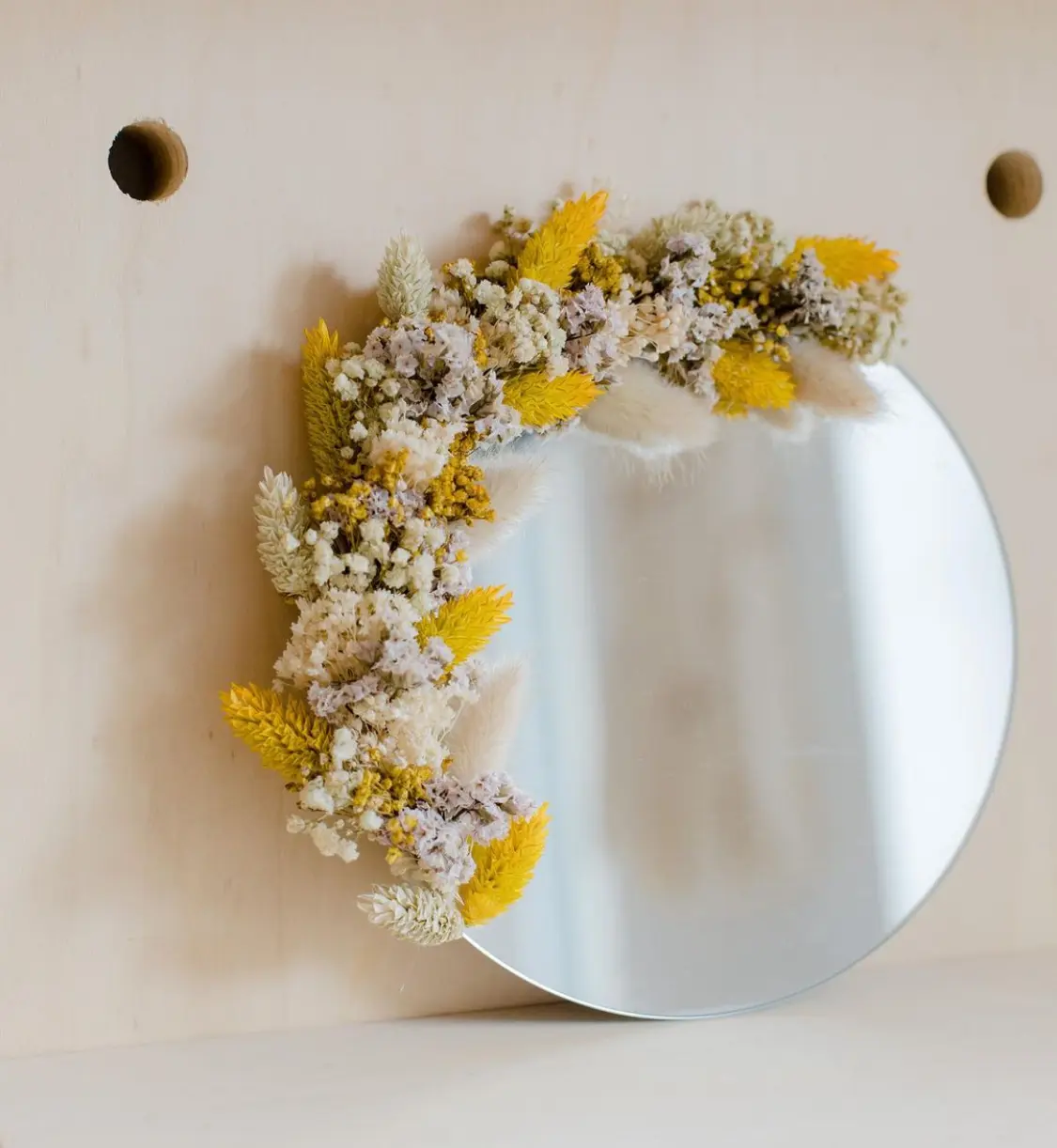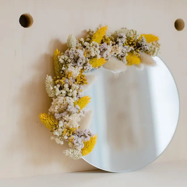 Pour réaliser un joli miroir décoré de fleurs séchées.