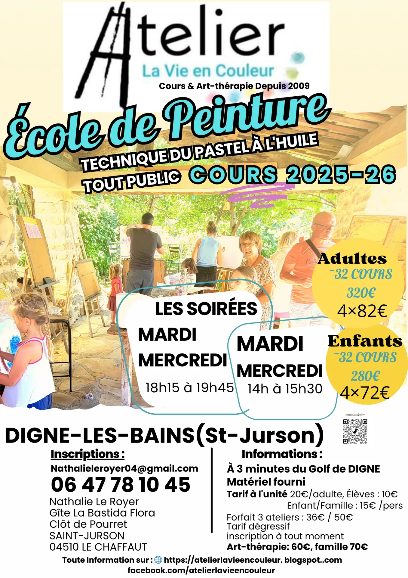Vous passerez un très agréable moment créatif dans l'atelier d'artiste. Le cadre est pittoresque avec une vue magnifique sur la montagne de Lure.