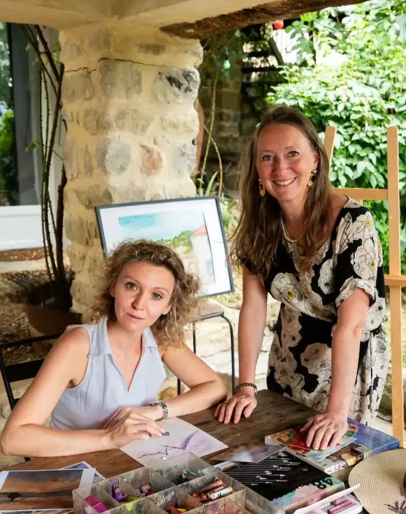 Au jardin, sur la terrasse couverte ou dans l'atelier, l'ambiance est conviviale, chacun peut repartir avec son tableau.