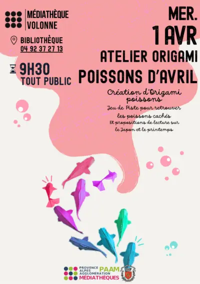 La Médiathèque de Volonne organise un atelier origami sur le thème des poissons et du printemps