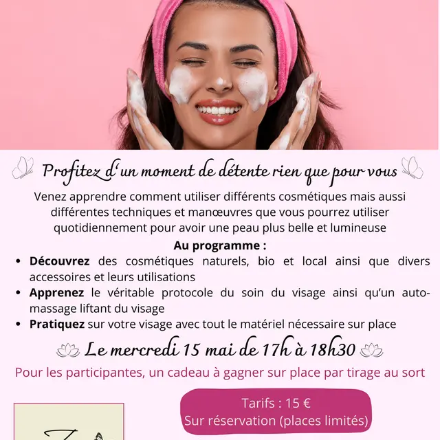 Venez apprendre comment utiliser différents cosmétiques mais aussi différentes techniques et manœuvres que vous pourrez utiliser quotidiennement pour avoir une peau plus belle et lumineuse.