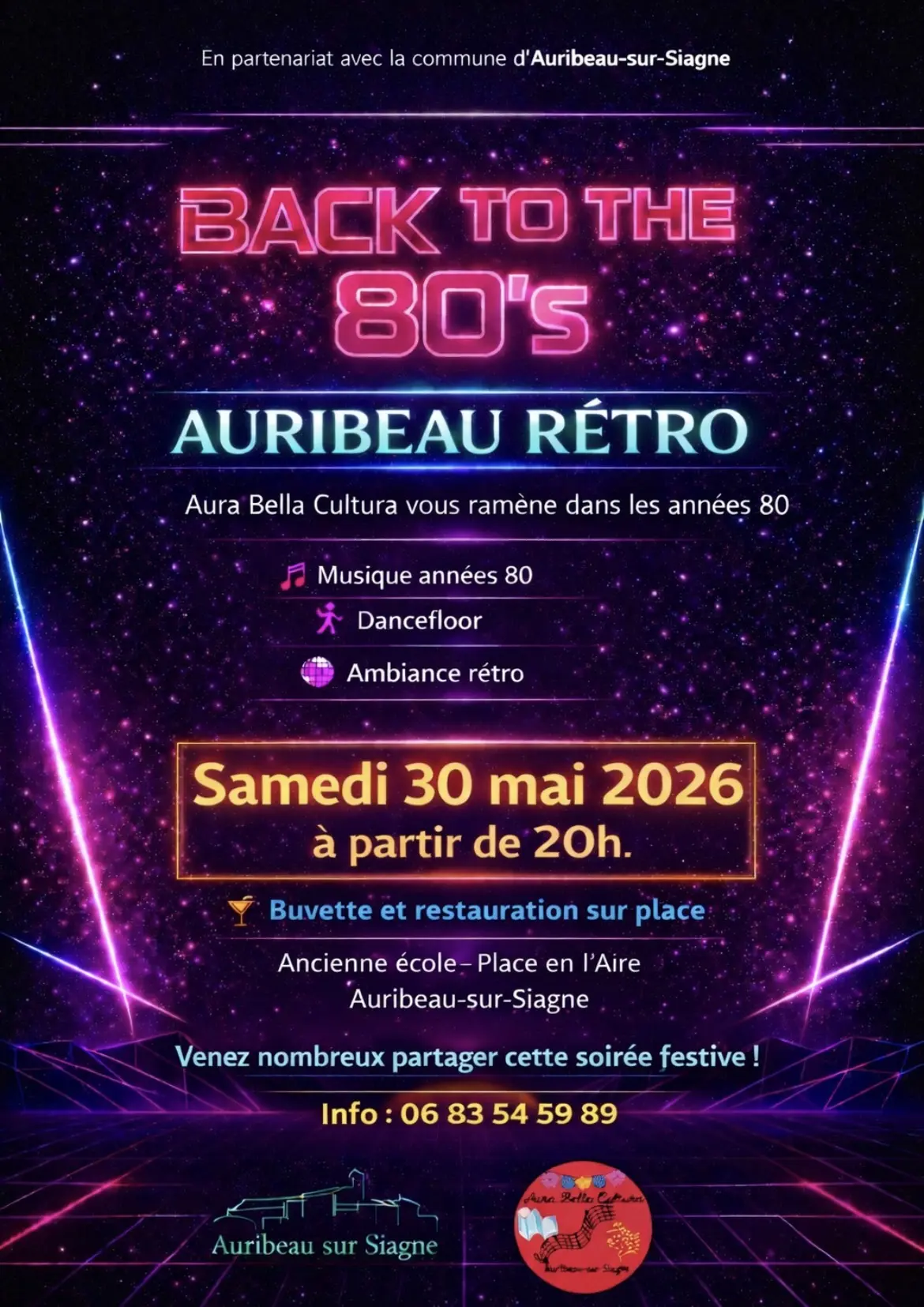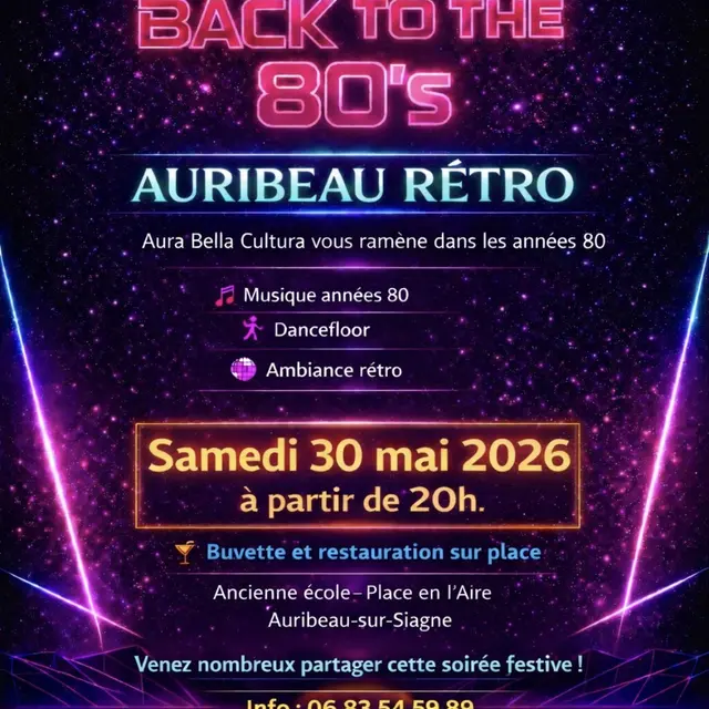 Aura Bella Cultura vous ramène dans les années 80 ! Buvette et restauration sur place. Venez nombreux partager cette soirée festive !