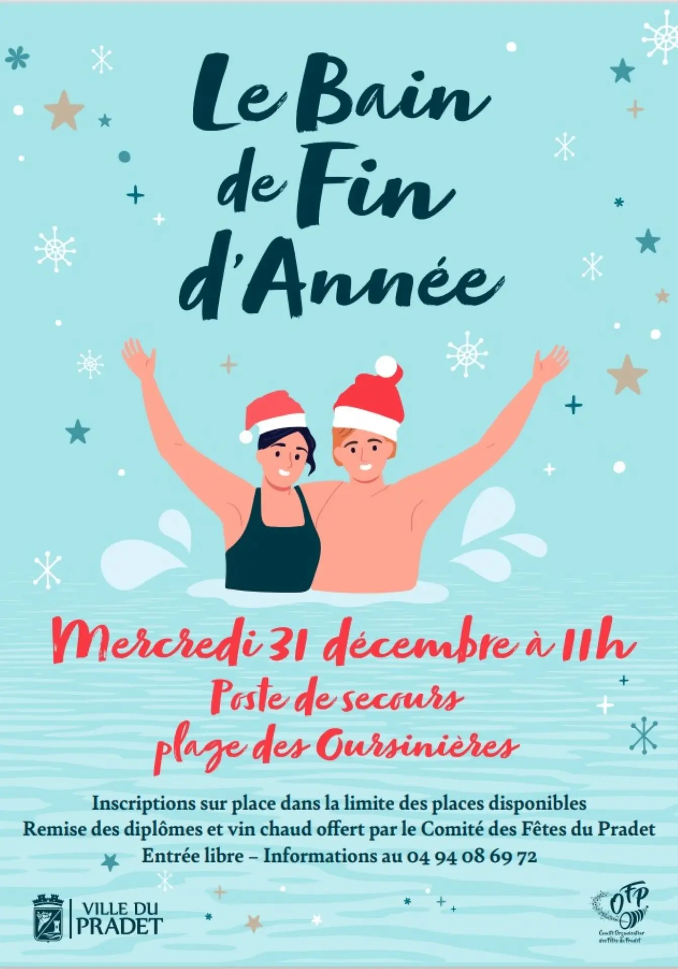 À l’issue du bain, une remise de diplôme ainsi qu’un vin chaud et des boissons soft seront offerts par le Comité des Fêtes du Pradet.