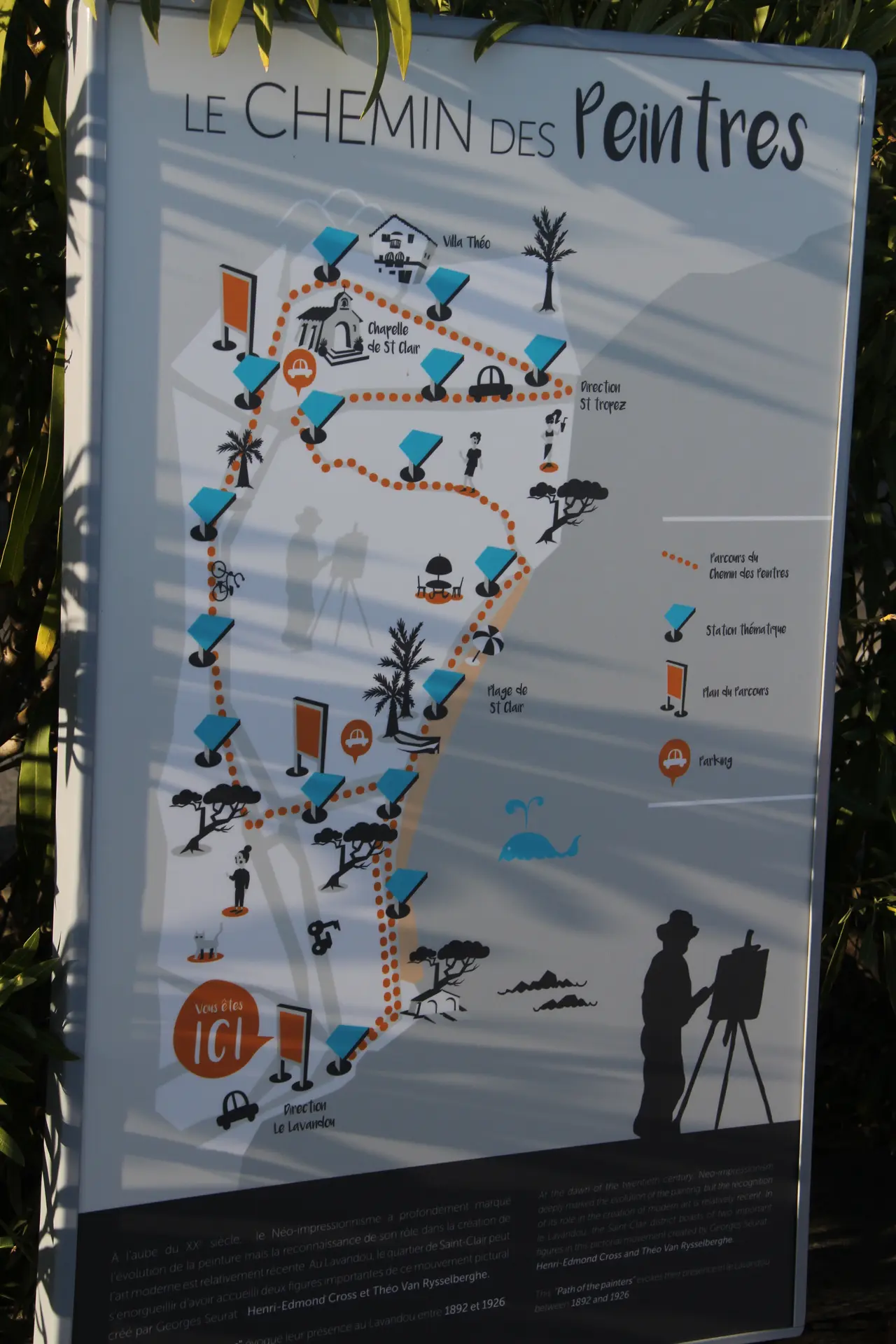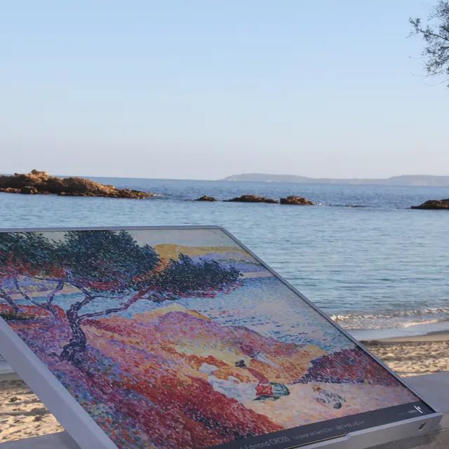 Parcours de 2.5km ponctué de pupitres représentants les œuvres réalisées par les peintres néo-impressionnistes Edmond Cross et Théo Van Rysselberghe.