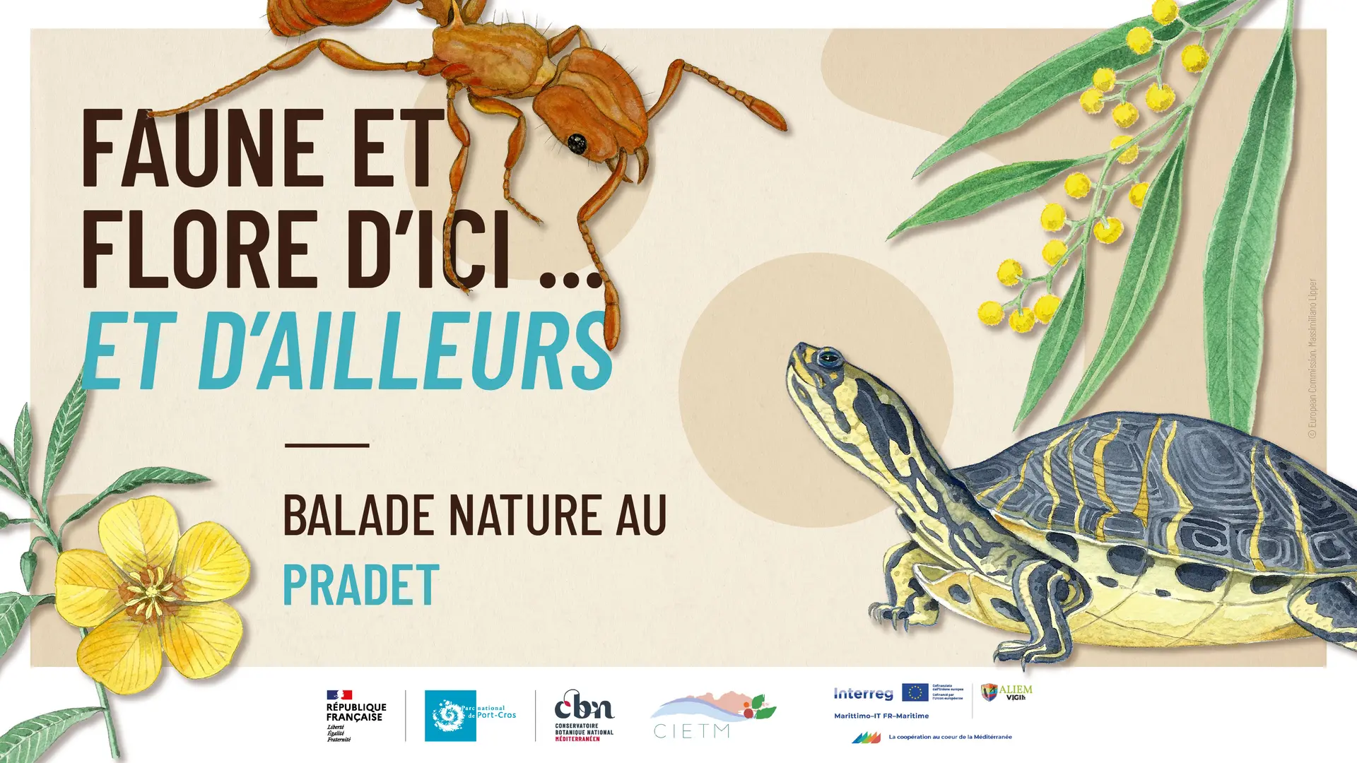 Cette balade botanique est animée par le collectif de la maison des guides du CIETM pour le compte du Conservatoire Botanique National Méditerranéen, en collaboration avec le Parc-National de Port-Cros. Animée de façon ludique et portée sur la découverte, elle participe à la sensibilisation du public aux enjeux majeurs des espèces exotiques envahissantes.