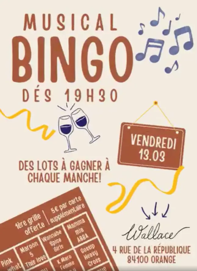 Deuxième édition du Bingo Musical au Wallace ! Écoutez la chanson, retrouvez le titre ou l'artiste et gagnez des cadeaux à chaque manche !