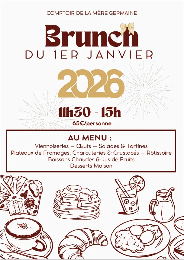 Entre petit déjeuner et déjeuner gargantuesque, laissez-vous tenter par un brunch festif et gourmand au Comptoir de la Mère Germaine !!
