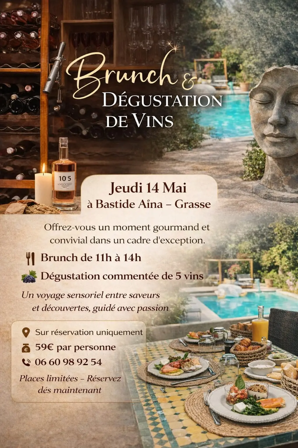 Brunch réalisé par la Bastide d'Aina et dégustation commentée de 2 vins rosé, 2 blanc, 1 rouge.
