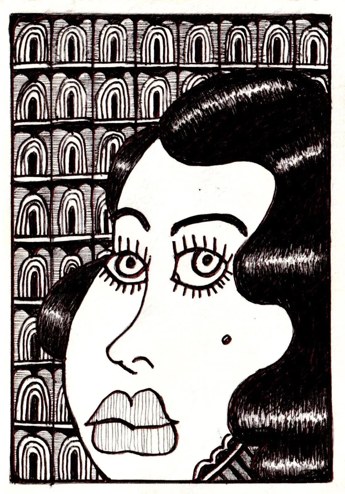Il prit un stylo Bic. Et maintenant il dessine. D’où viennent ses personnages ? Sans doute de son enfance sinon ce gars la semaine dernière devant le café de la gare. Pit StarMonkey aime les papiers peints d’antan. Il les reproduit, les réinvente dans ses dessins. Il aime répéter le geste, comme une thérapie. Rapide, nerveux et sans réfléchir si possible. Il regarde le papier et voit l’encre se vider. Plaisir, moment de calme. Introspection.