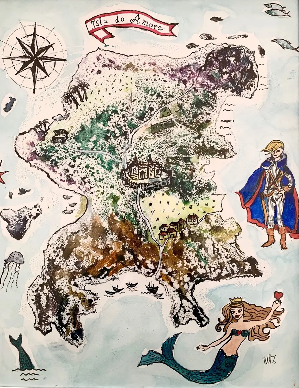 Les îles de Martine Malzard sont des images pour faire rêver ; d’aventures, de découvertes, d’amour...des lieux où le trait et la couleur , d’une naïveté assumée, font revenir à l’enfance qui n’est jamais très loin. L’aquarelle et l’encre de chine en sont les supports. L’imagination fait le reste.