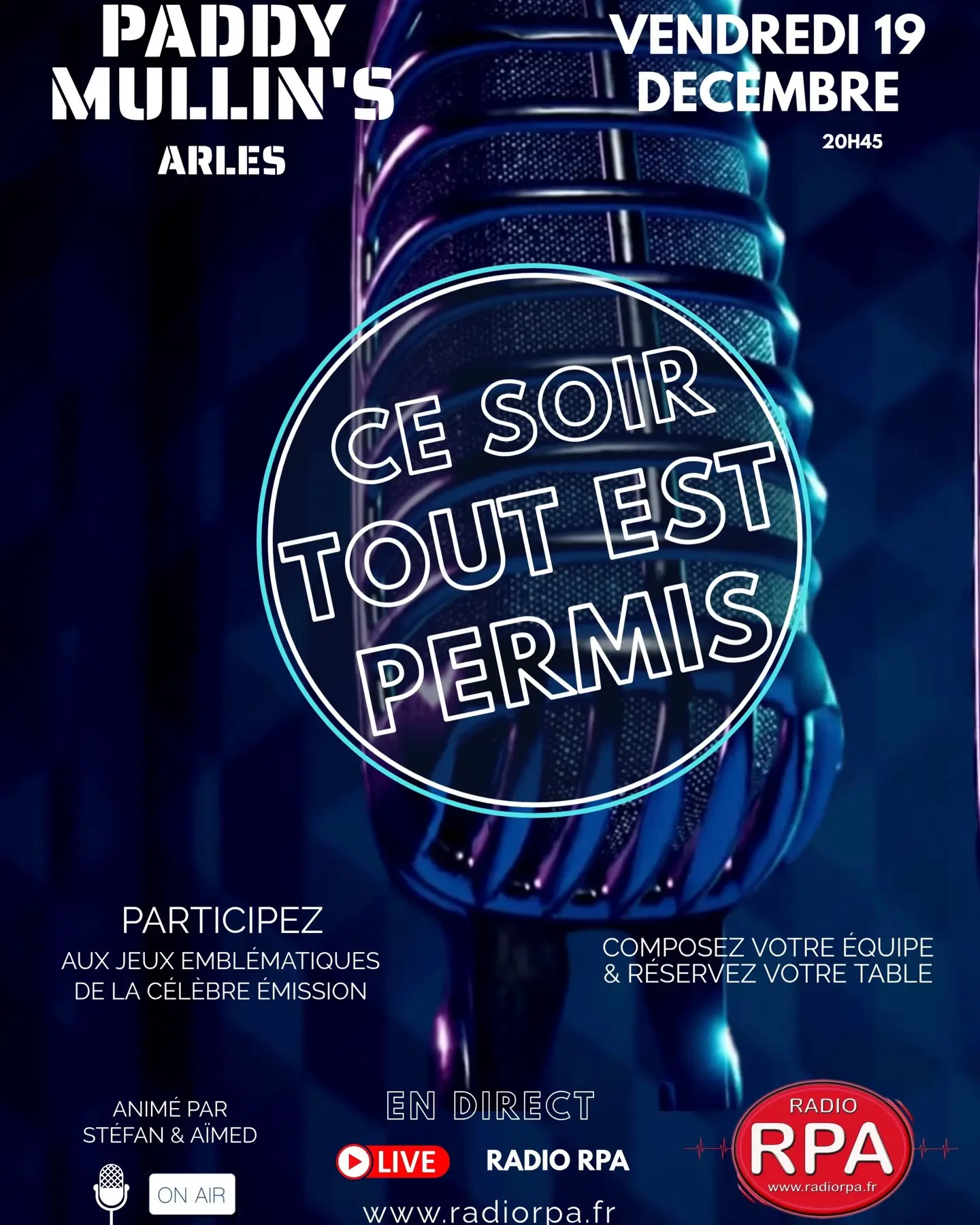 La soirée sera animée par Stéfan & Aïmed et diffusée en direct sur Radio RPA. Entre amis, en famille ou entre collègues, c’est l’occasion parfaite de partager un moment original… et mémorable !
