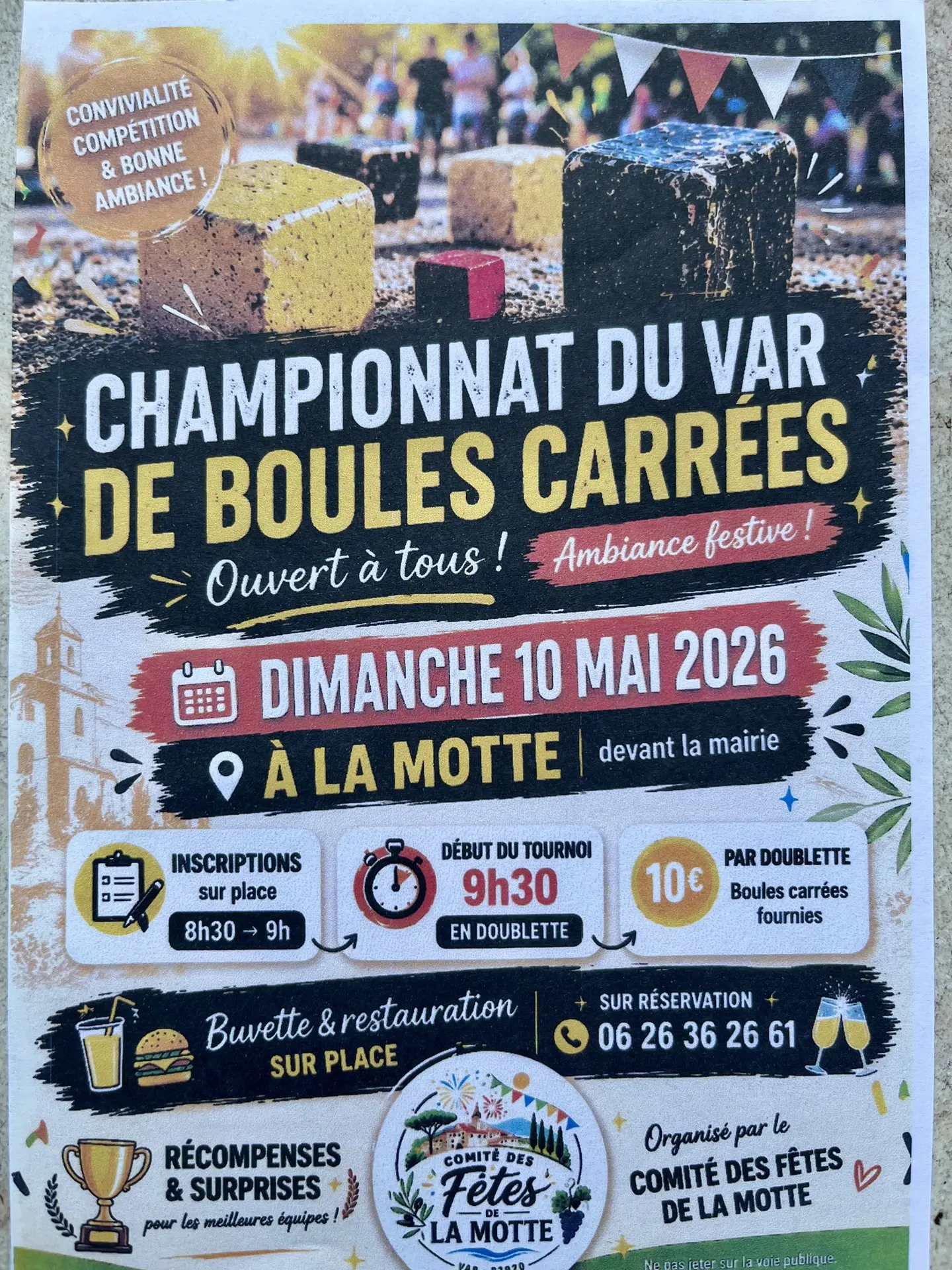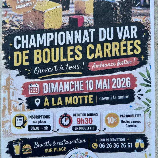 Championnat du Var de boules carrées, ouvert à tous avec une ambiance festive.