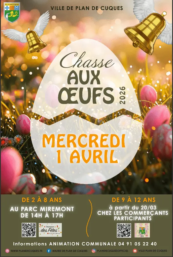 Chasse aux œufs organisée par la ville de Plan de Cuques le mercredi 1er avril 2026.