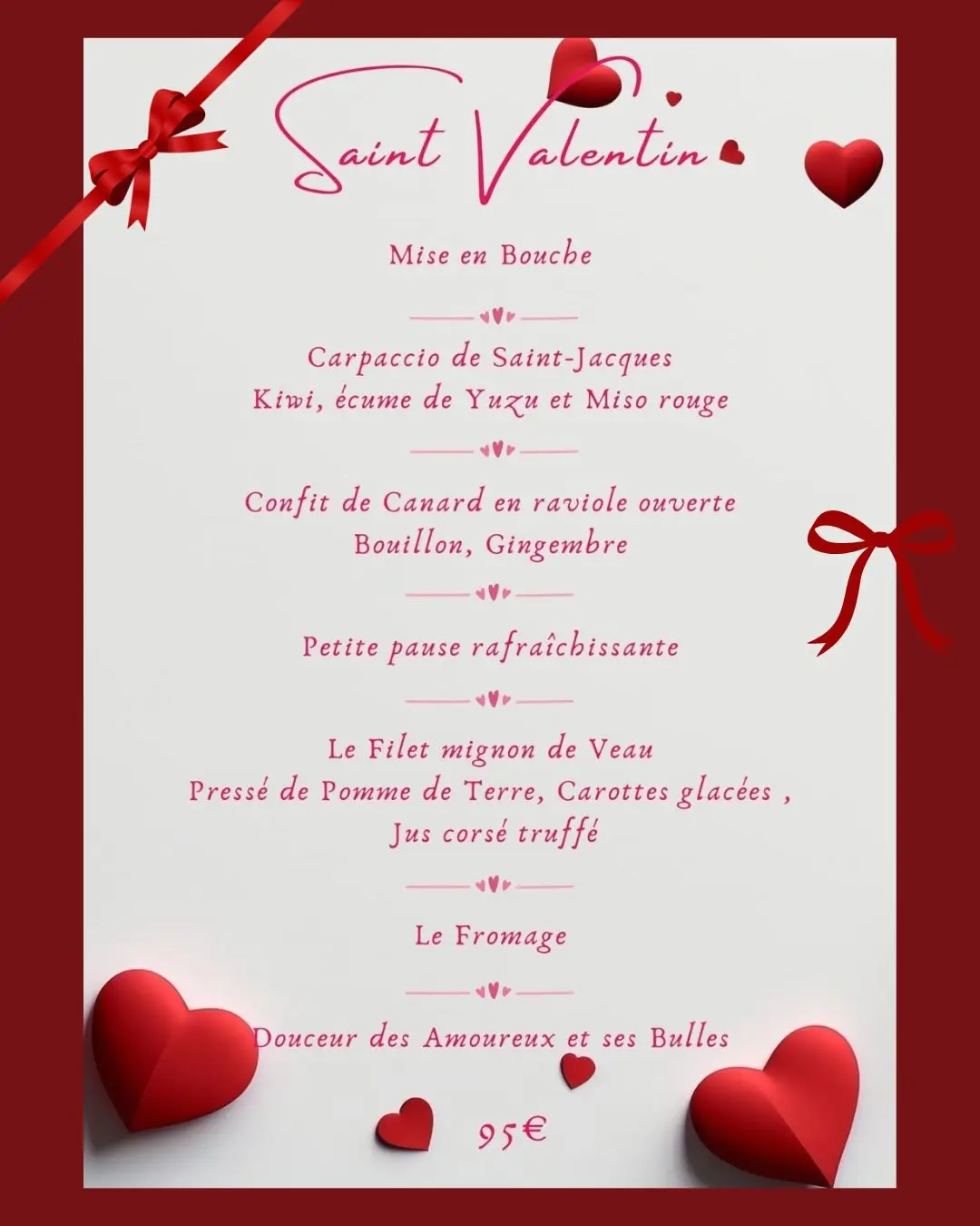 Chateau d'Argens - Menu Saint Valentin