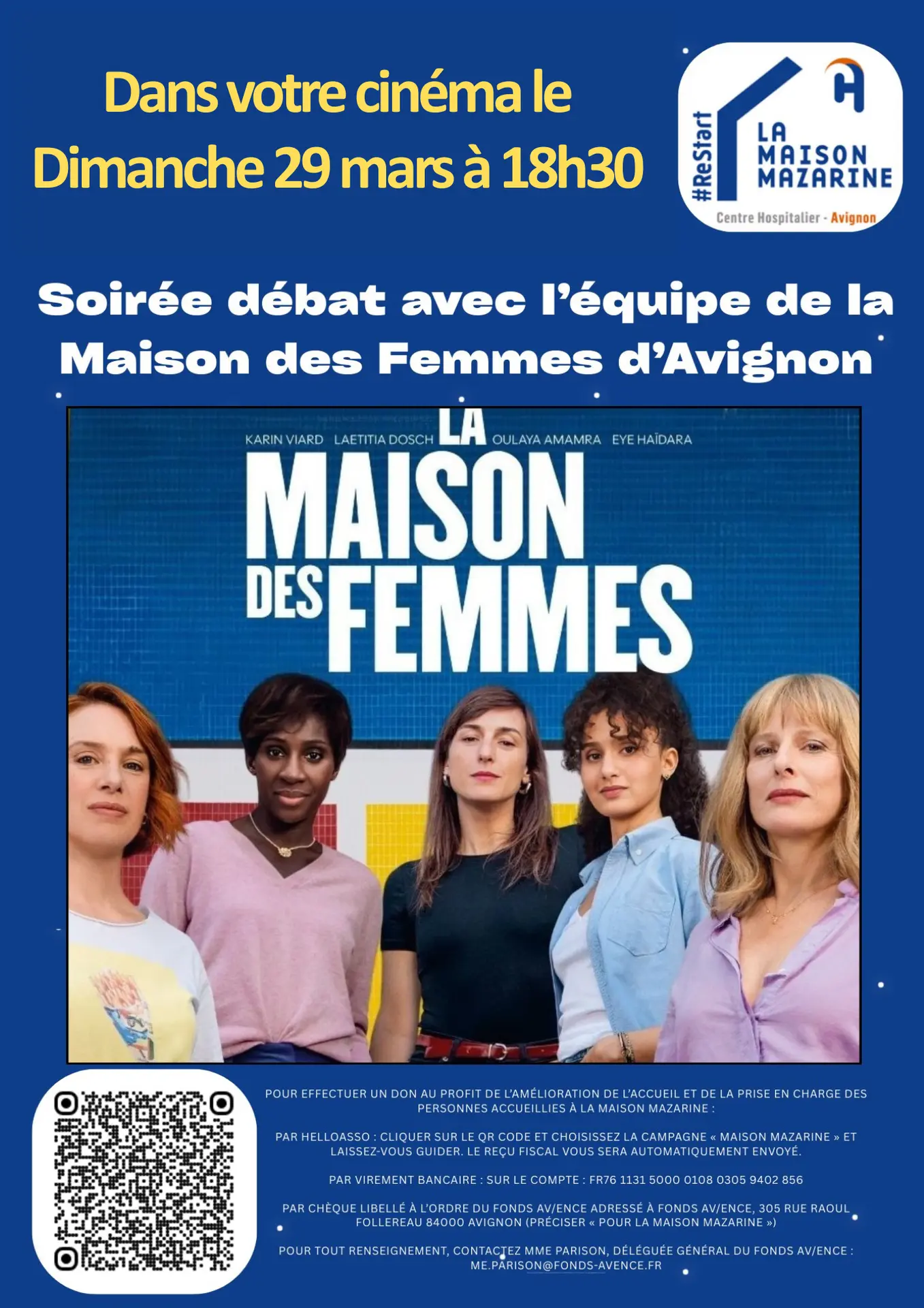 "La Maison des Femmes" vous donne rendez-vous le dimanche 29 mars 2026 à 18h30, suivi d’une rencontre avec l’équipe de la Maison des Femmes d’Avignon.