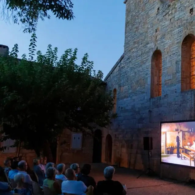 Soirée de cinéma sur le parvis de l’abbatiale dans la douceur étoilée estivales.