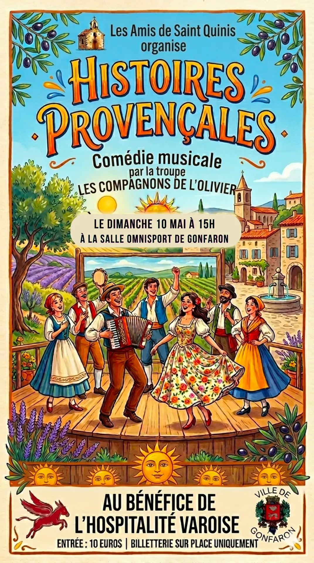 Comédie musicale par la troupe Les Compagnons de l'Olivier, organisée par Les Amis de Saint Quinis au bénéfice de l'Hospitalité Varoise. Entrée : 10 €. Billetterie sur place uniquement.