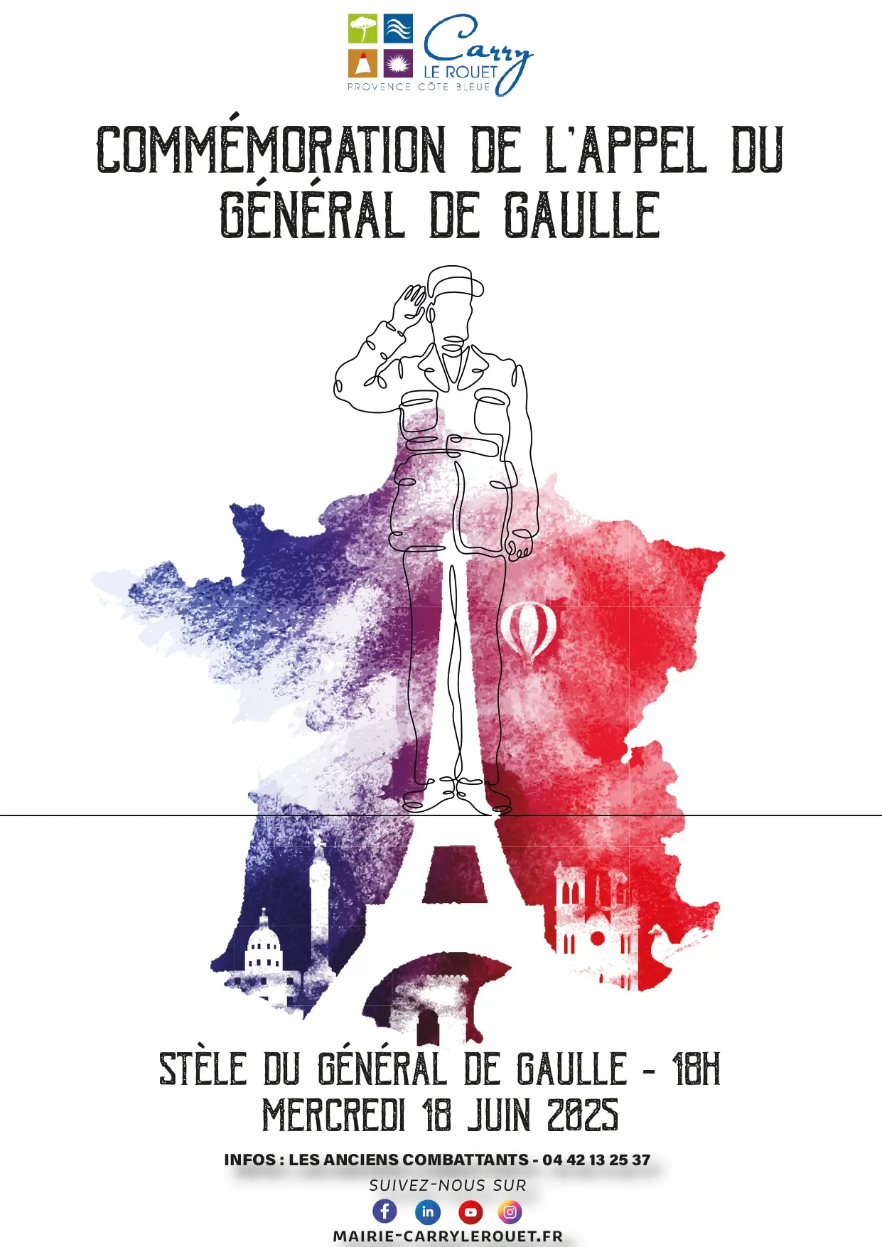 18 juin - Journée nationale commémorative de l'Appel historique du général de Gaulle. L'appel du 18 juin est le premier discours prononcé par le général de Gaulle à la radio de Londres, sur les ondes de la BBC, le 18 juin 1940.